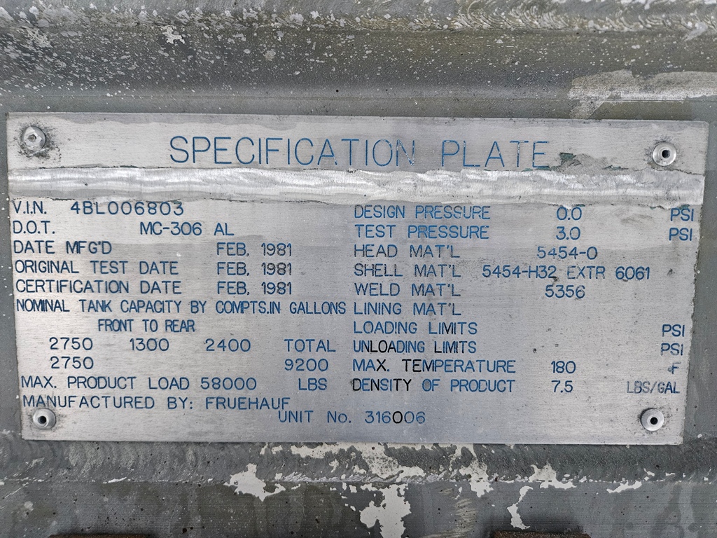 1975 Westank 42FT Tandem MC 306 Aluminum Tanker Trailer (#010)