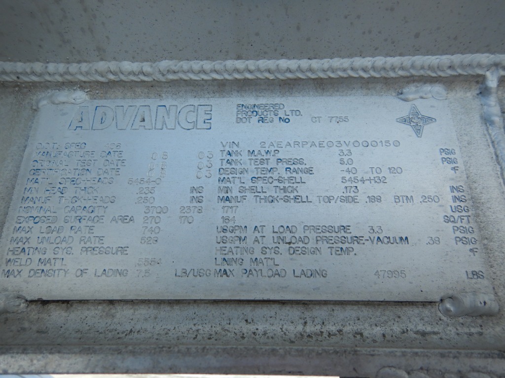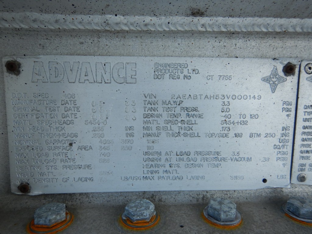 Home / Petroleum Tankers / 2003 Advance Super-B DOT 406 Aluminum Tanker Trailers (#27)